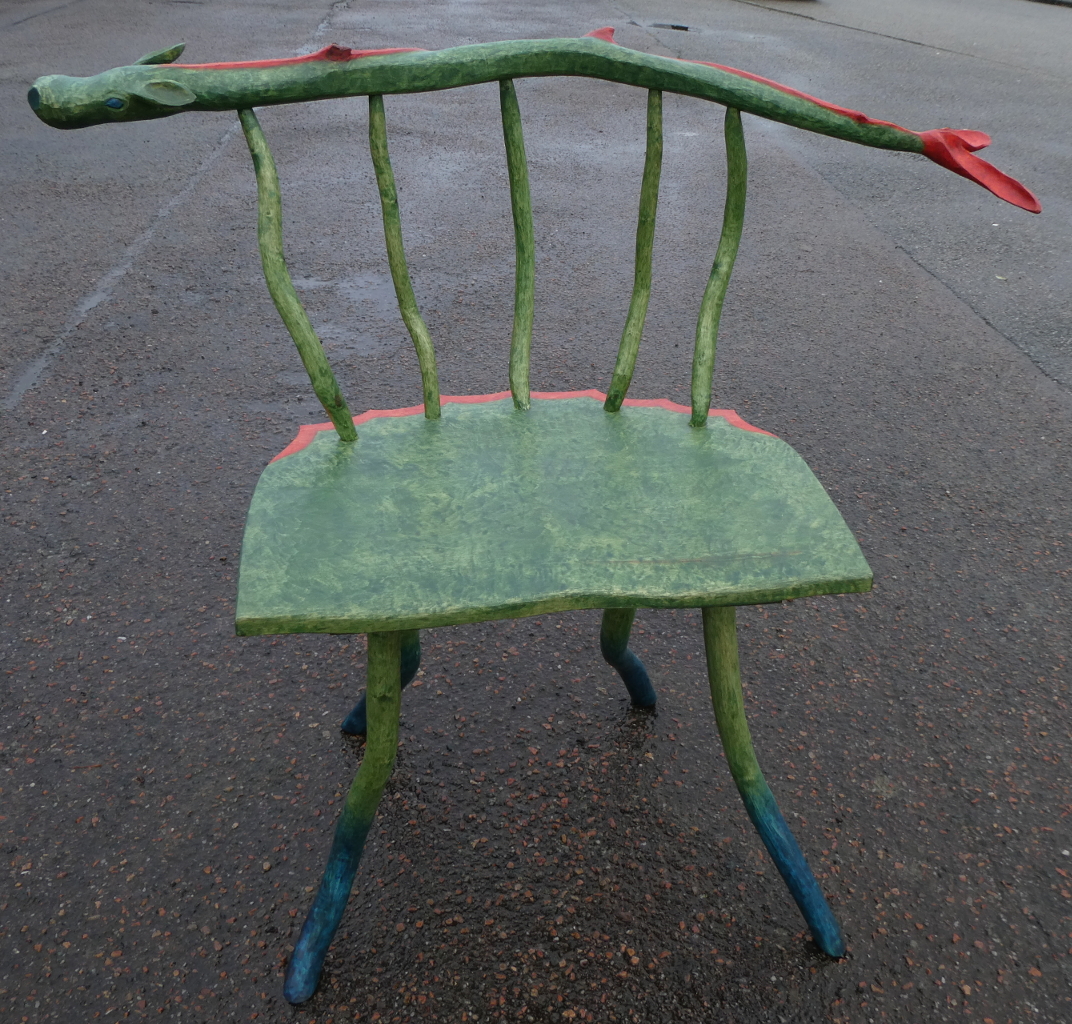 Krokvuxna ben och rygg till en sits i sågat brädvirke. Delarna är valda för att de har precis den där lagom böjen som passar till ryggen, eller den där krokigheten som blir ett lagom utställt ben.