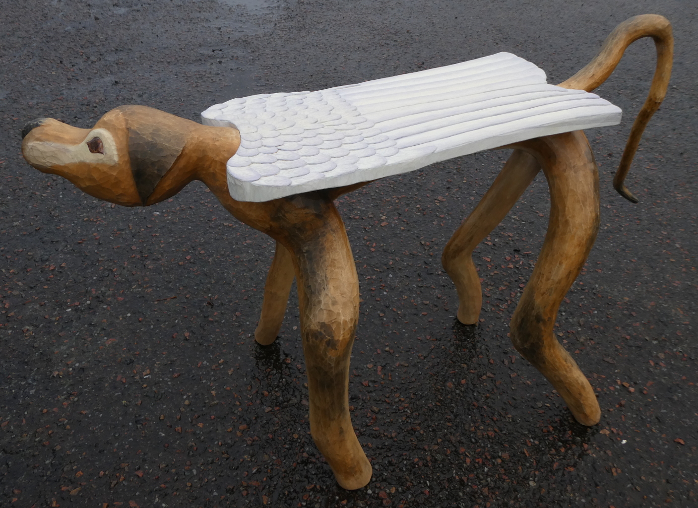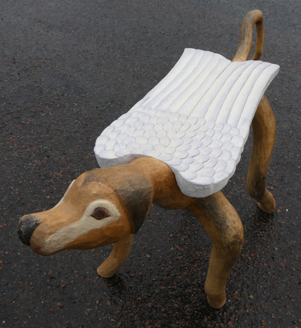 En krokig gren lämnad efter kalhuggning av en skog hade huvud, svans och två ben. Allt som behövdes var två ben till och ett par vingar. Vips står där en kompanjon som man dessutom kan sitta på.
